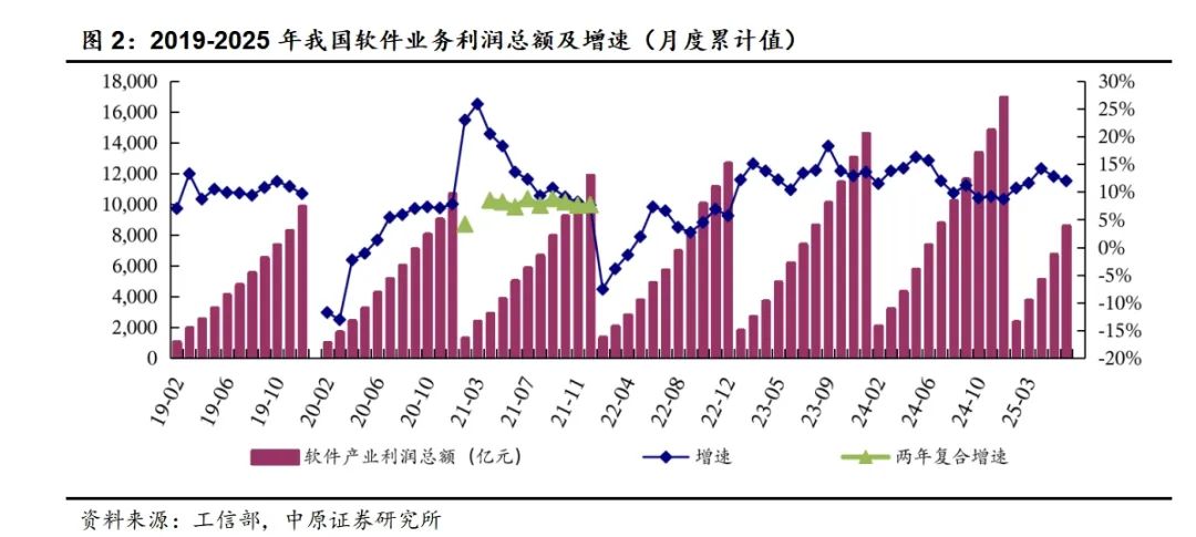 2025年1-6月软件产业增速持续上升。根据工信部数据,2025年1-6月软件业务收入7.06万亿元,同比增长11.9%,较1-5月回升了0.7 PCT。
