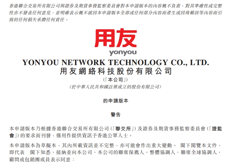 6月27日,用友网络科技股份有限公司(简称:“用友网络”)正式向港交所递交招股书,准备在港交所上市。