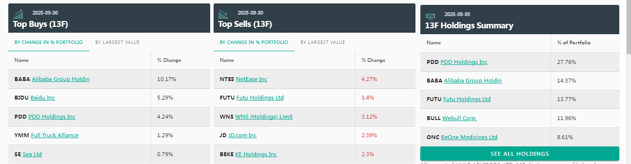 随着美股机构投资者第三季度持仓数据(13F)报告陆续披露,高瓴、景林等中资私募机构的海外投资动向也尽数浮出水面。